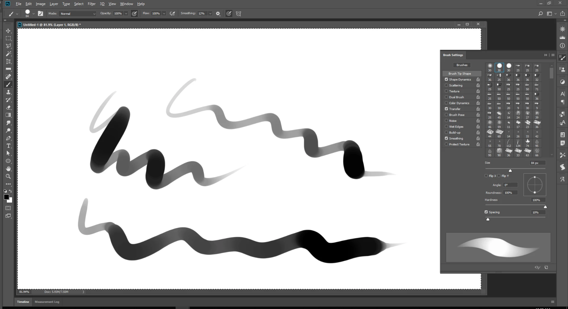 What brush settings are you using.  There are so many controls stroke can vary quite a bit