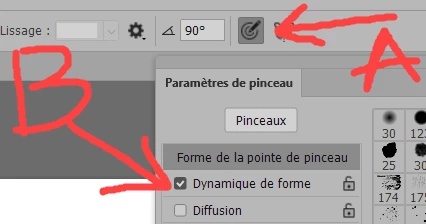 Thanks for coming to my rescue too! I noticed how the Shape Dynamics option kept coming on of its own during my testing efforts? Now that you mention it, I watched it closely and noticed that, as soon as I click Button A, to activate "Pen pressure determines Size" in the Control bar, Button B in the Shape palette "Shape Dynamics" is automatically checked :