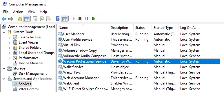 wacom professional service is running.