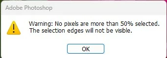 Warning: No pixels are more than 50% selected. The selection edges will not be visible