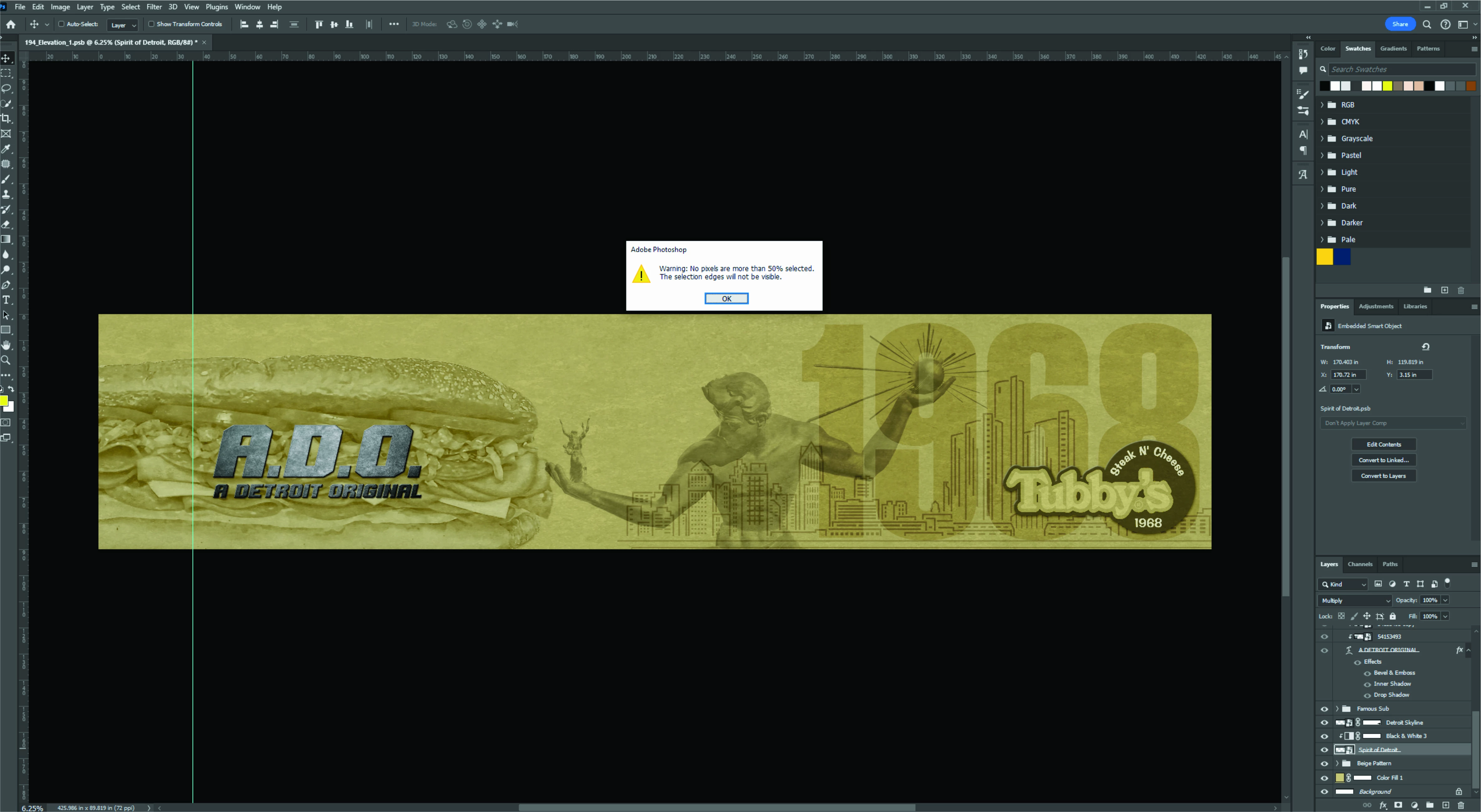 Warning: No pixels are more than 50% selected. The selection edges will not be visible.