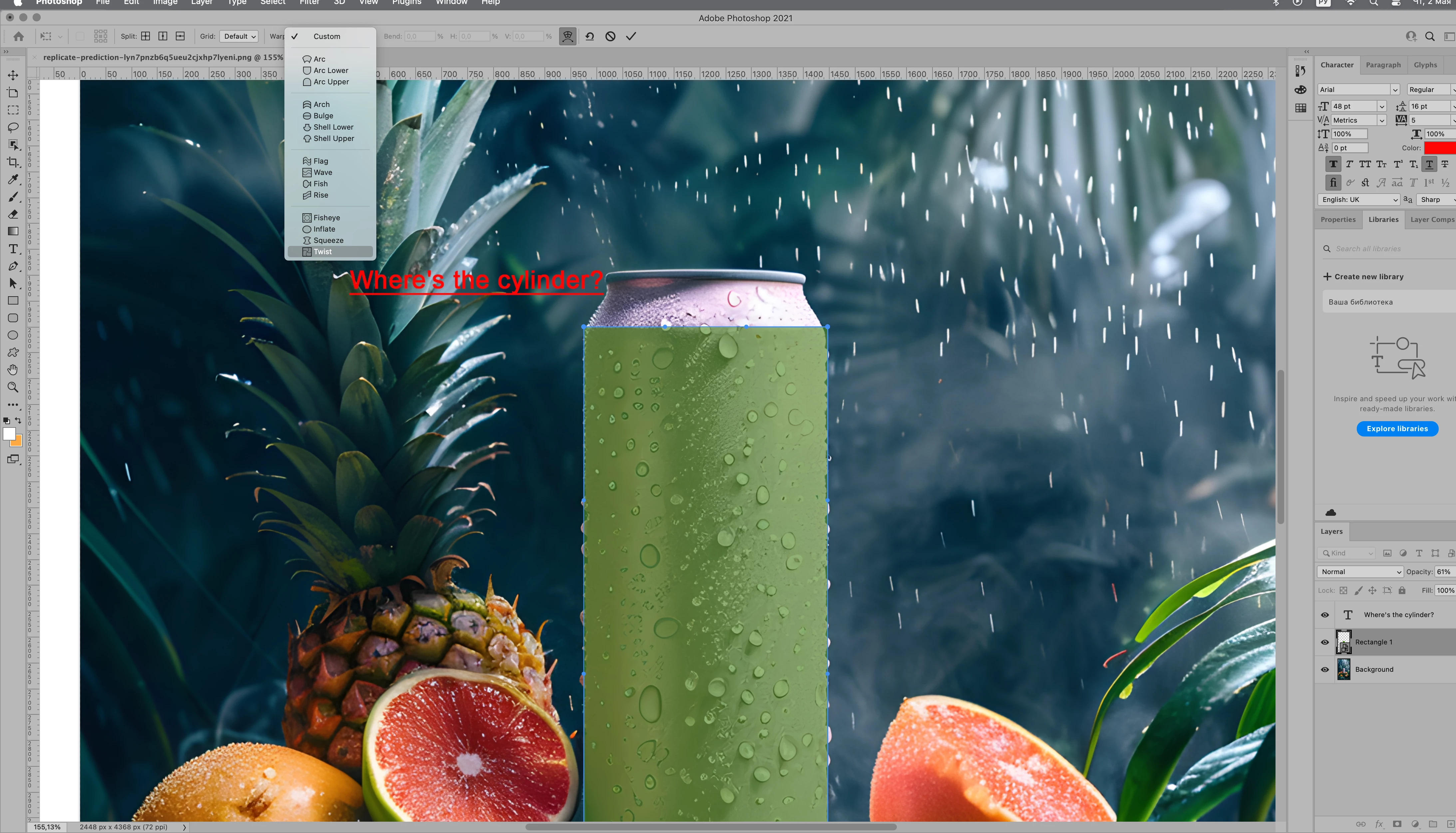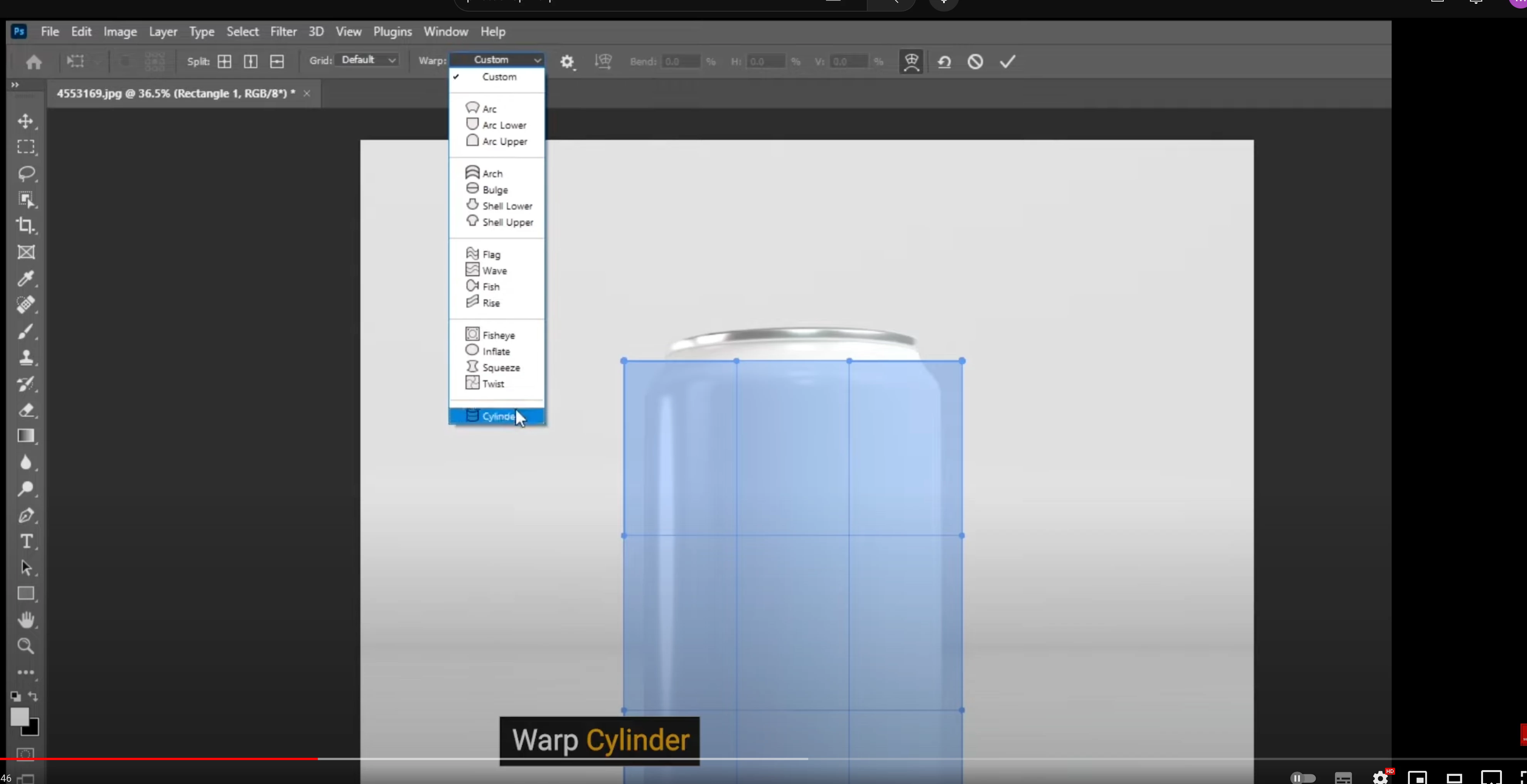 In order to get the Warp>Cylinder, you need to update Photoshop to either 2023 or 2024.