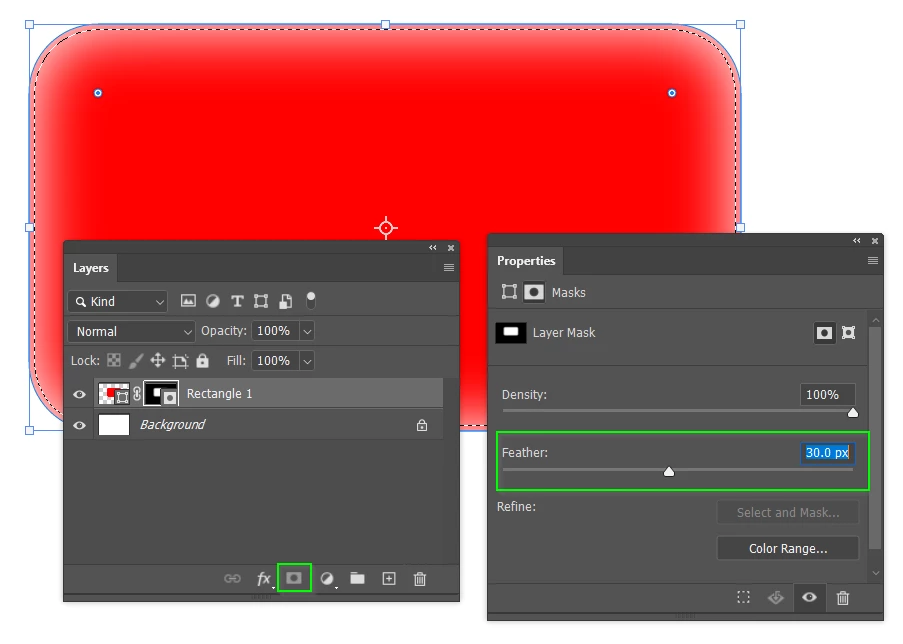 I chose 5 pixels. Then clicked the mask icon to add the mask, and gave it some feather.