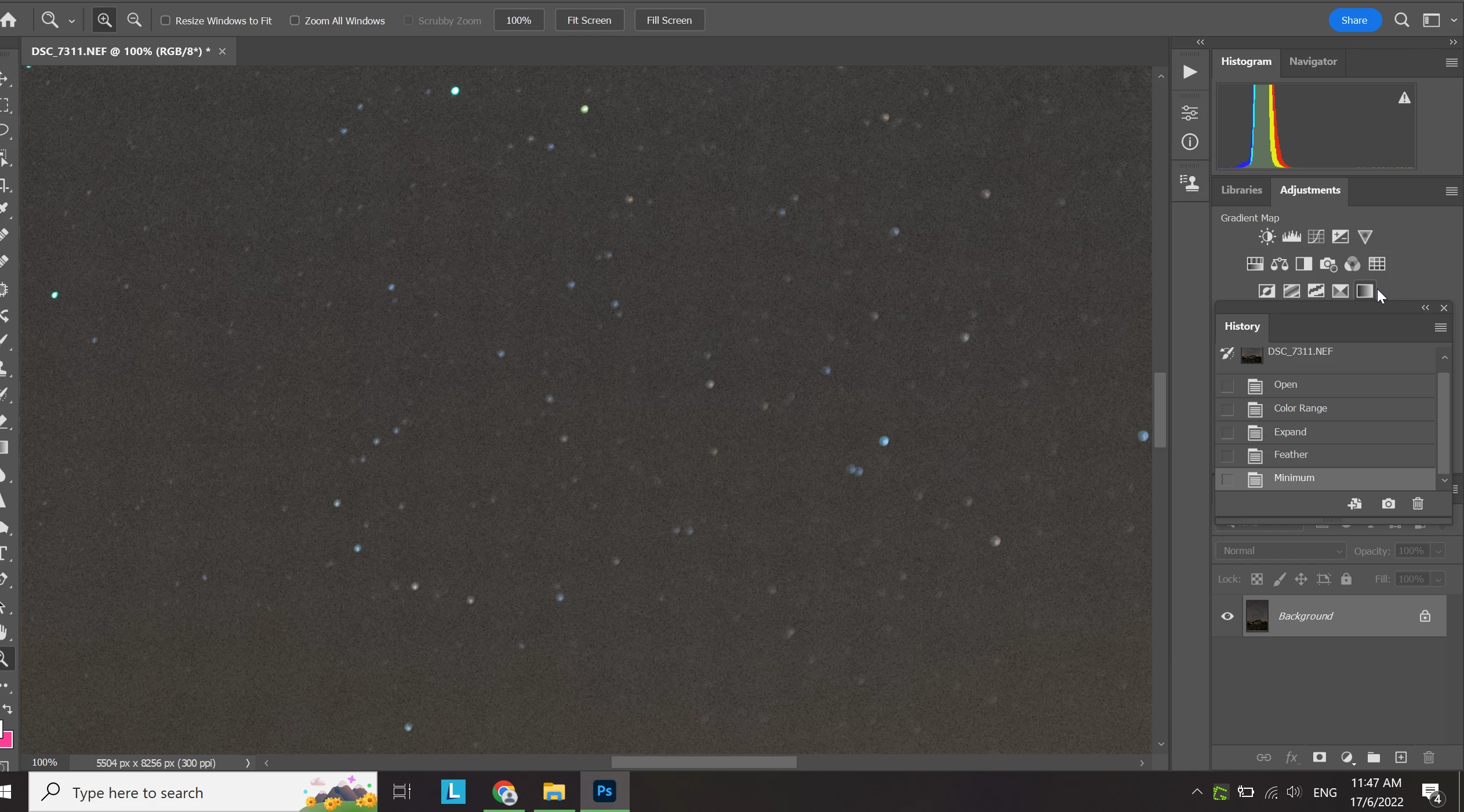 I'm trying to do star reduction on my milky way raw file (Nikon D850, Rokinon 14mm).