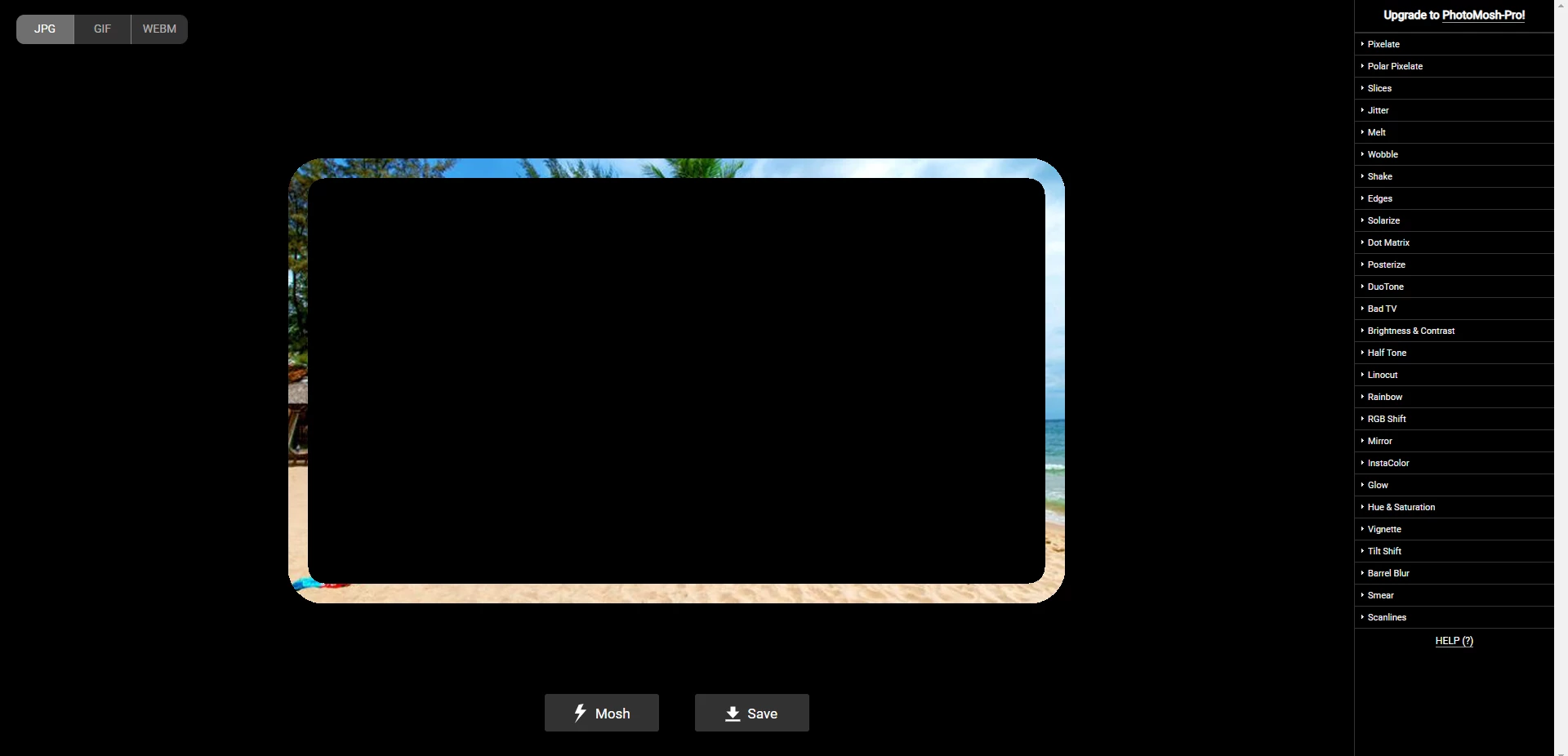When I upload the exported png to the photomosh website, I get this: