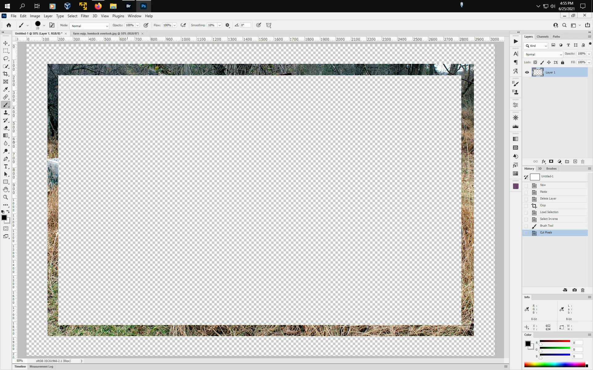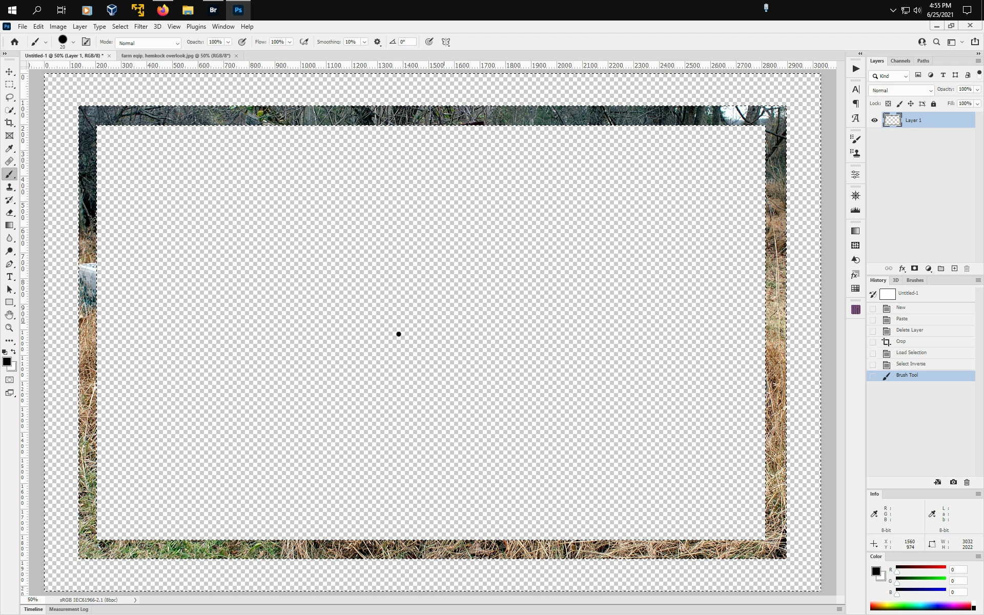 I cropped an area to make a border using the select tool:
