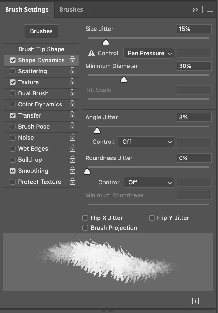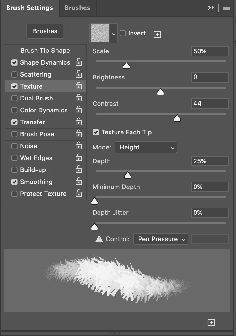 I noticed this on the KYLE ultimate Pencil brush but I cannot figure out what the setting is. This will be useful to know for when creating my own textured brushes.