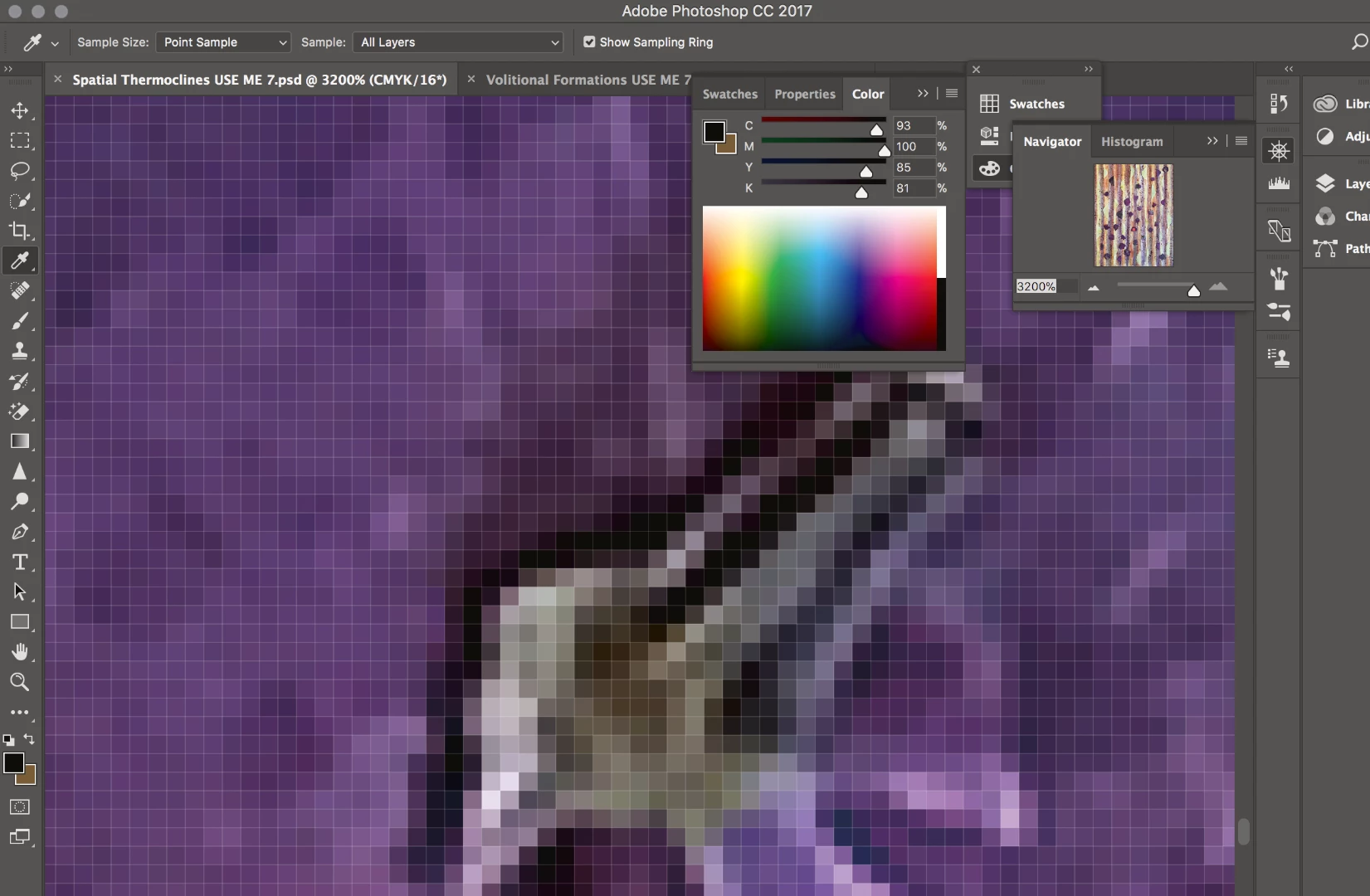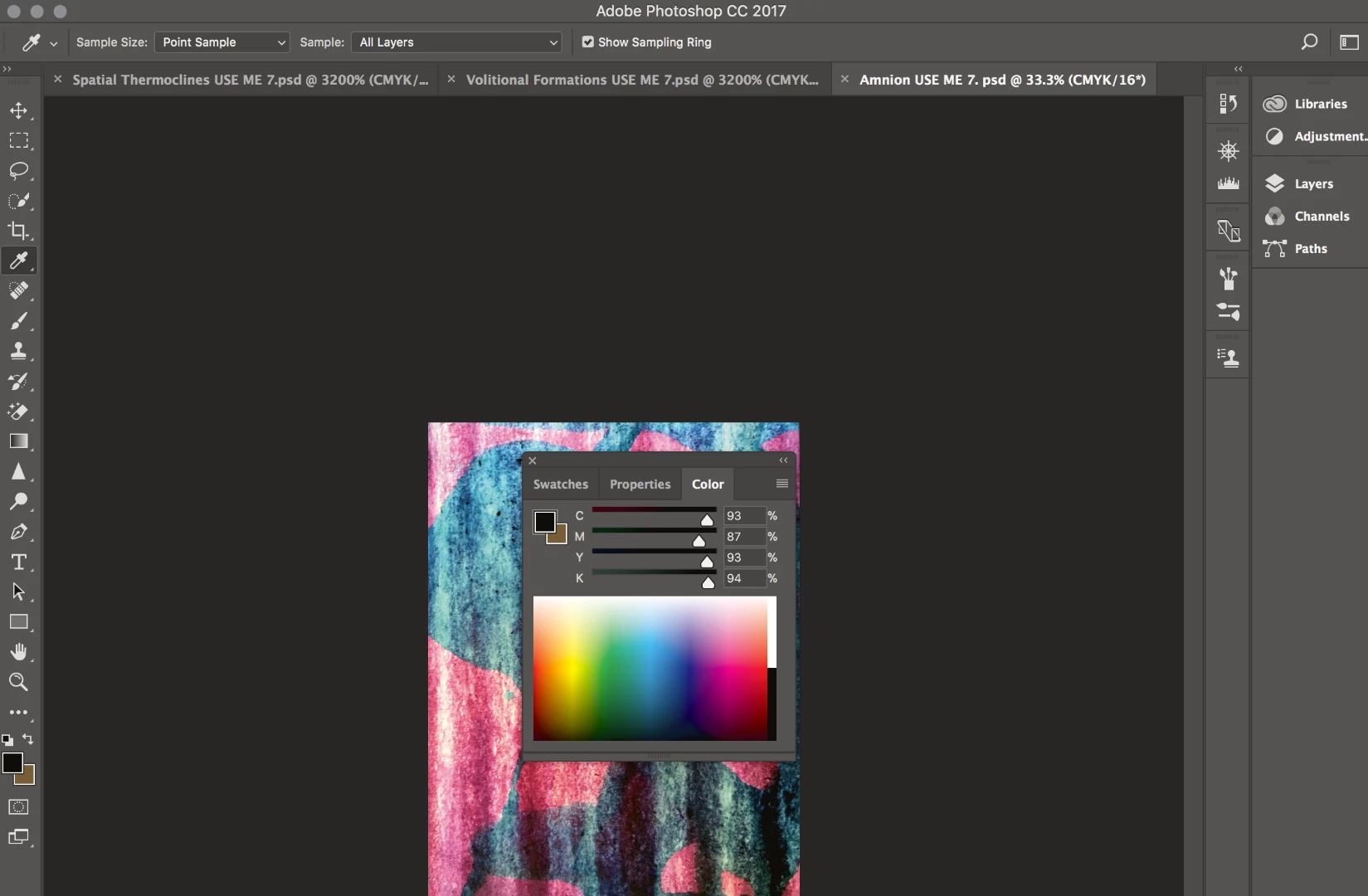I converted to CMYK early and edited there