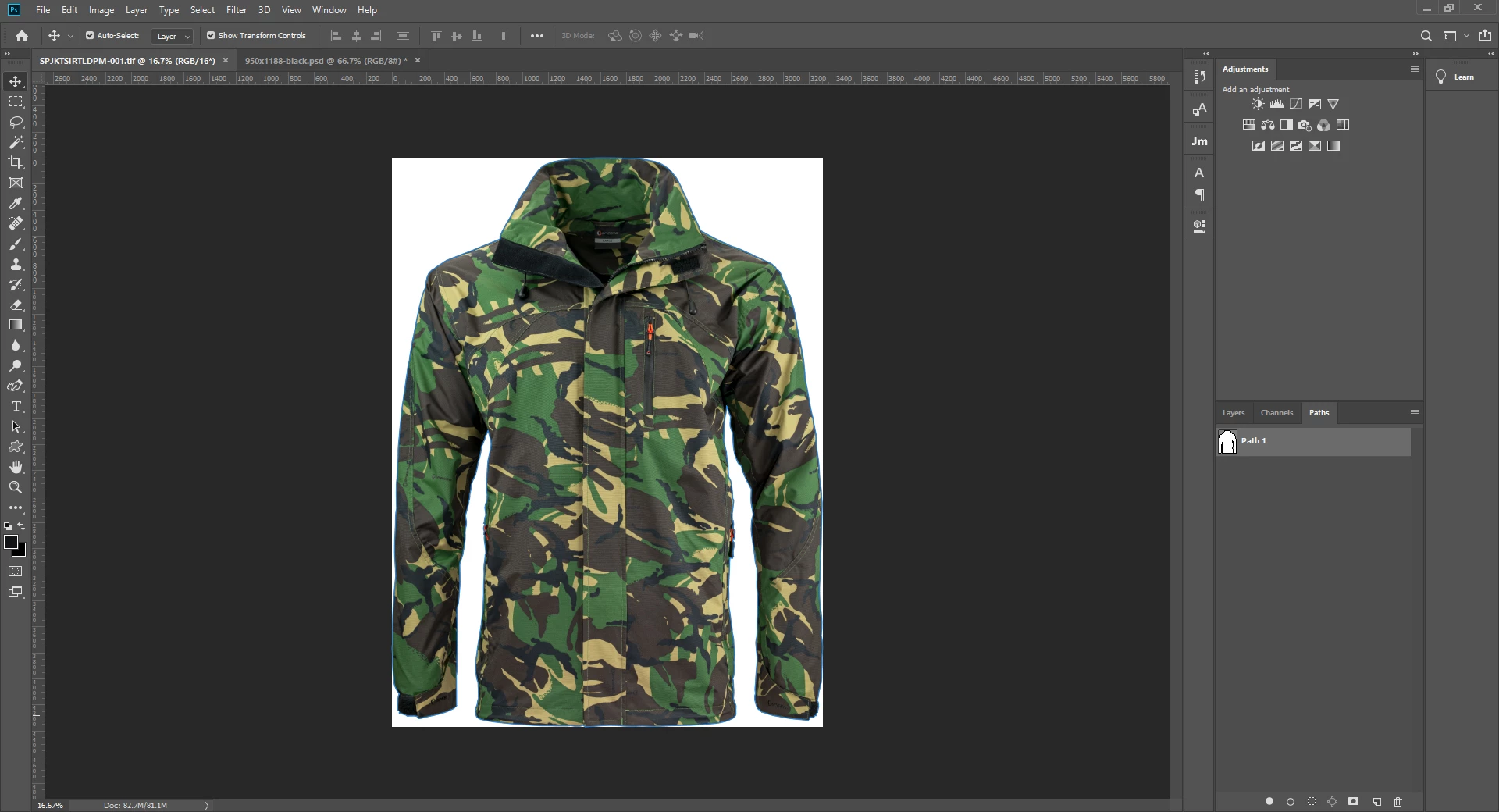 Now the problem I have is when I open the tif file in PS (File->Open) I can see the path I created previously. However, if I drag and drop the file (from the browser level) to a new project, the path disappears. Same happens when I drag and drop the same file opened in PS (from one project to another). Is it normal behaviour or do I need to do something to enable the path?