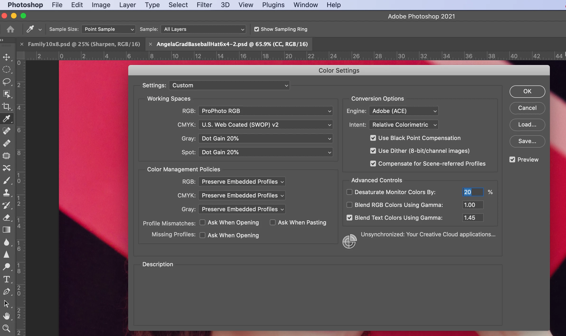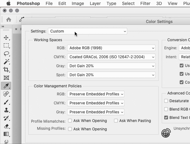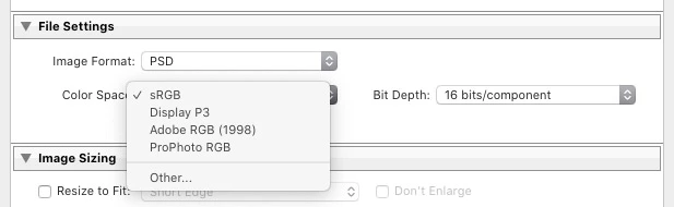 What is the default colour profile in Photoshop?