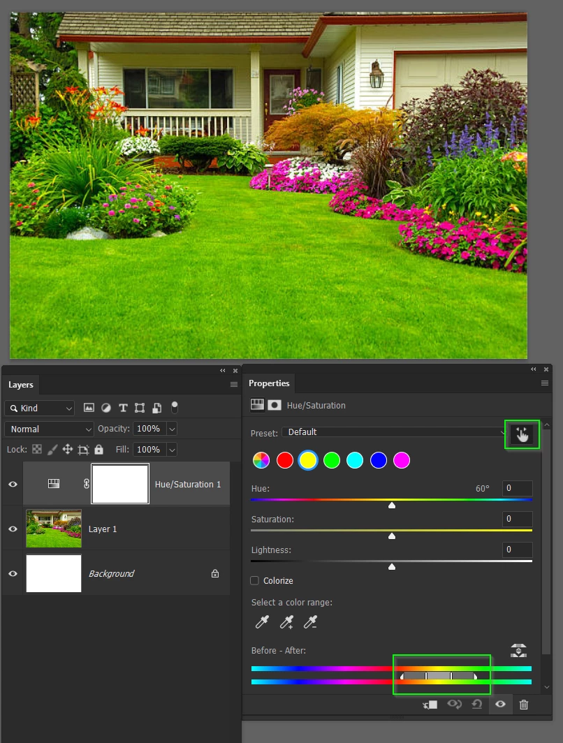 I paste into a .psd photo a second scene with grass and trees and tarmac, to replace non Humans and barriers, and see that the added grass is more saturated and more yellowy, perhaps also the trees, however I need the grass to match the foreground grass what is the best method. Selecting the gras would in some cases involve capturing all the grass baldes, take to long, and auto methods too inaccurate, a means of selecting the grass and its range of greens with a click as a start point, then adjusting hue and saturation etc, however I find the hue adjustment tool too fierce and false, one nudge right is often too much, the increments are too much of a change. since Pshop 30 yrs or so ago its been like that, a real pain. And AI that uses up 5 credits is no goo as I have hundreds of pics to do.