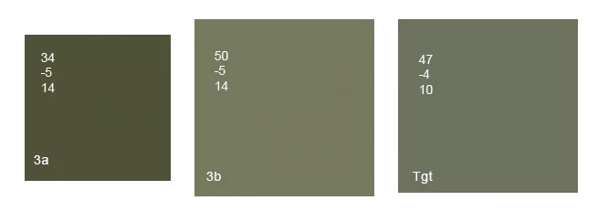 I have a photo of the same object, one is painted a slightly different green to the other, I wish to tell the one to take on the same shade of green as the other.