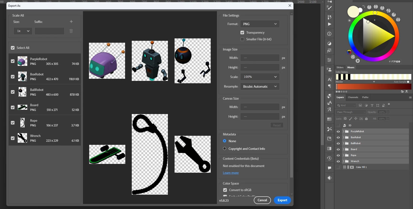 I am trying to batch export multiple groups at the same time in a photoshop file as pngs and each group in the export as panel gets progressively darker according to the layer order.