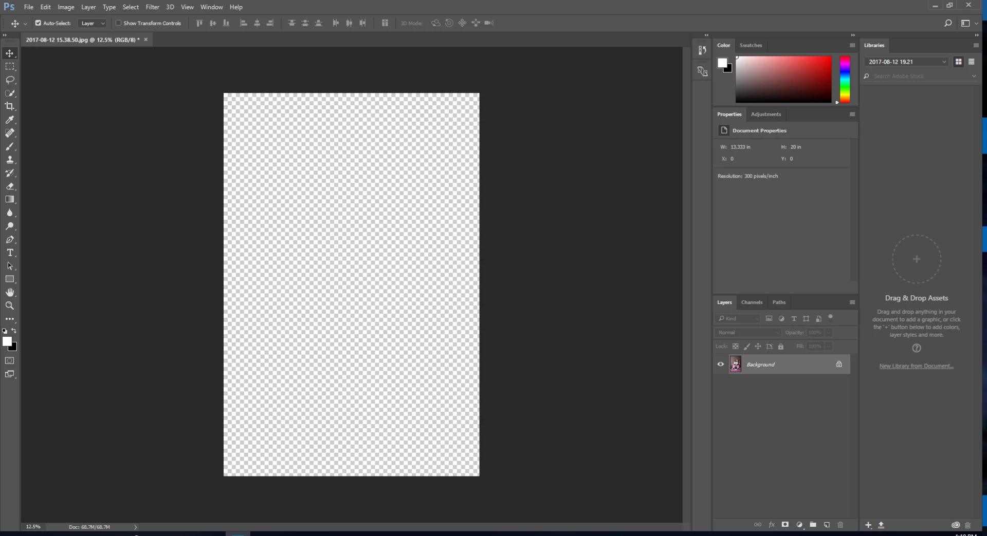 When I open a photo in Photoshop CC 2017 I only see a checkered background. How do I see my photo?