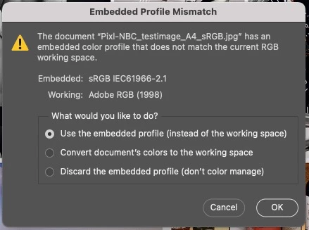 As you can see in the following comparison, the left one being the original, and the right one being the one I opened on photoshop, when doing so it gets a red tint. How can I fix this?