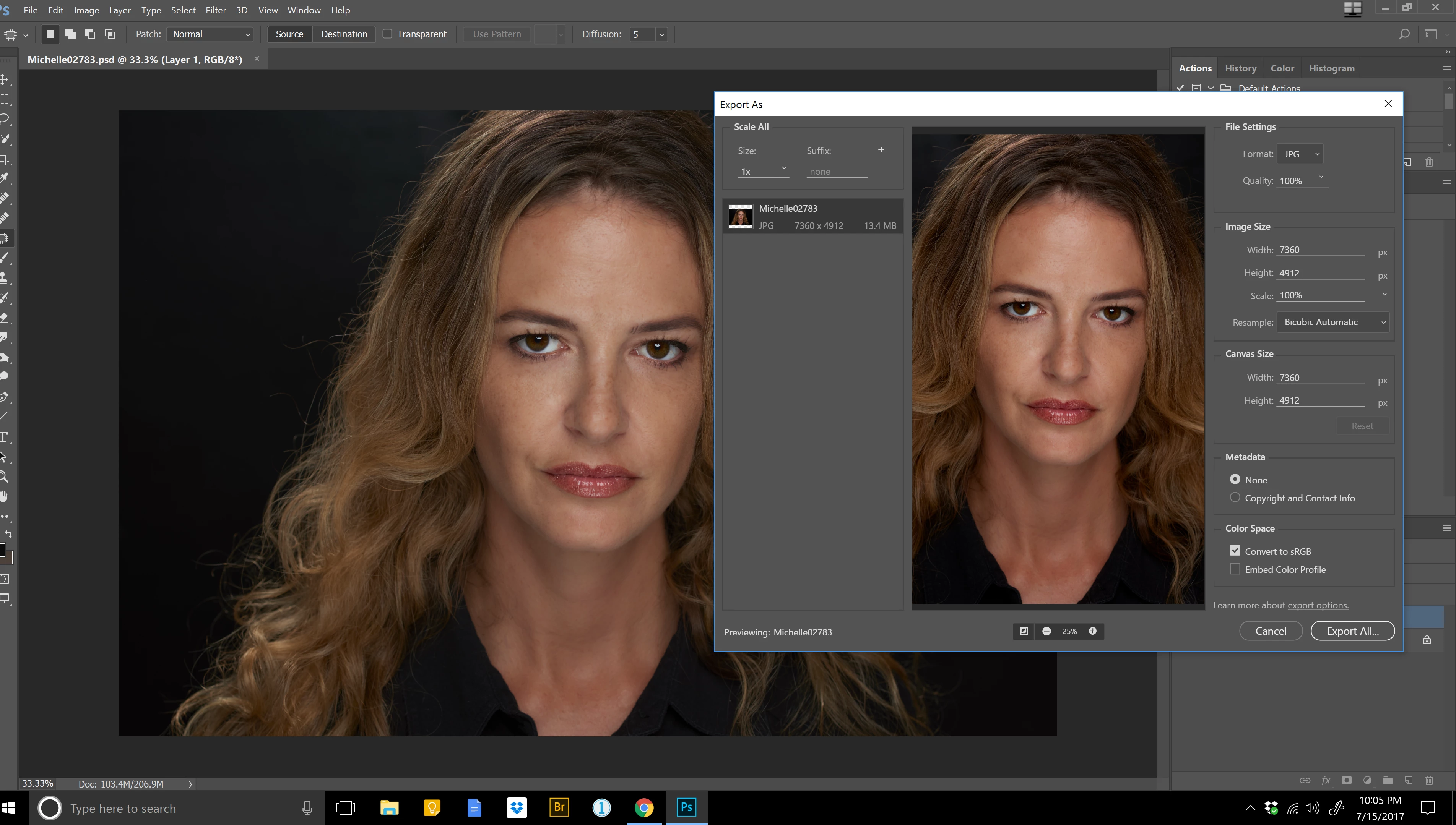 when saving or exporting from psd to jpeg the picture becomes over saturated