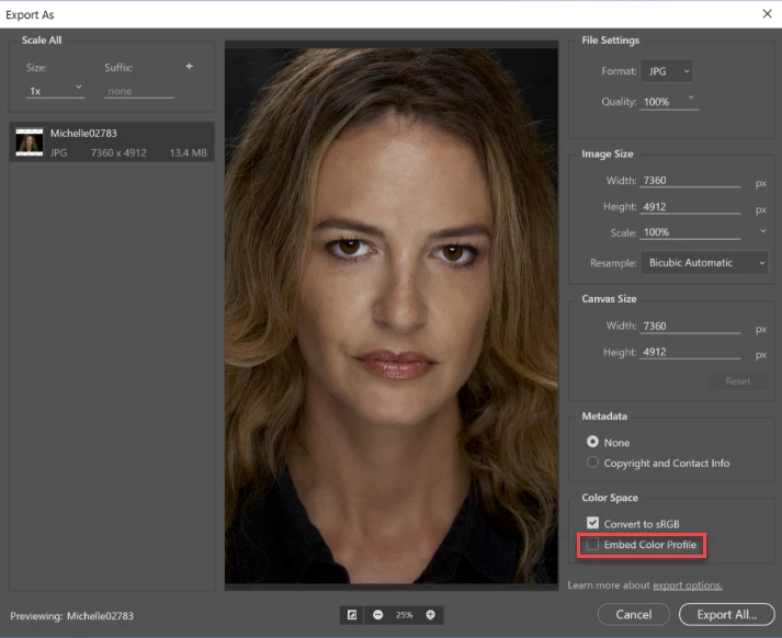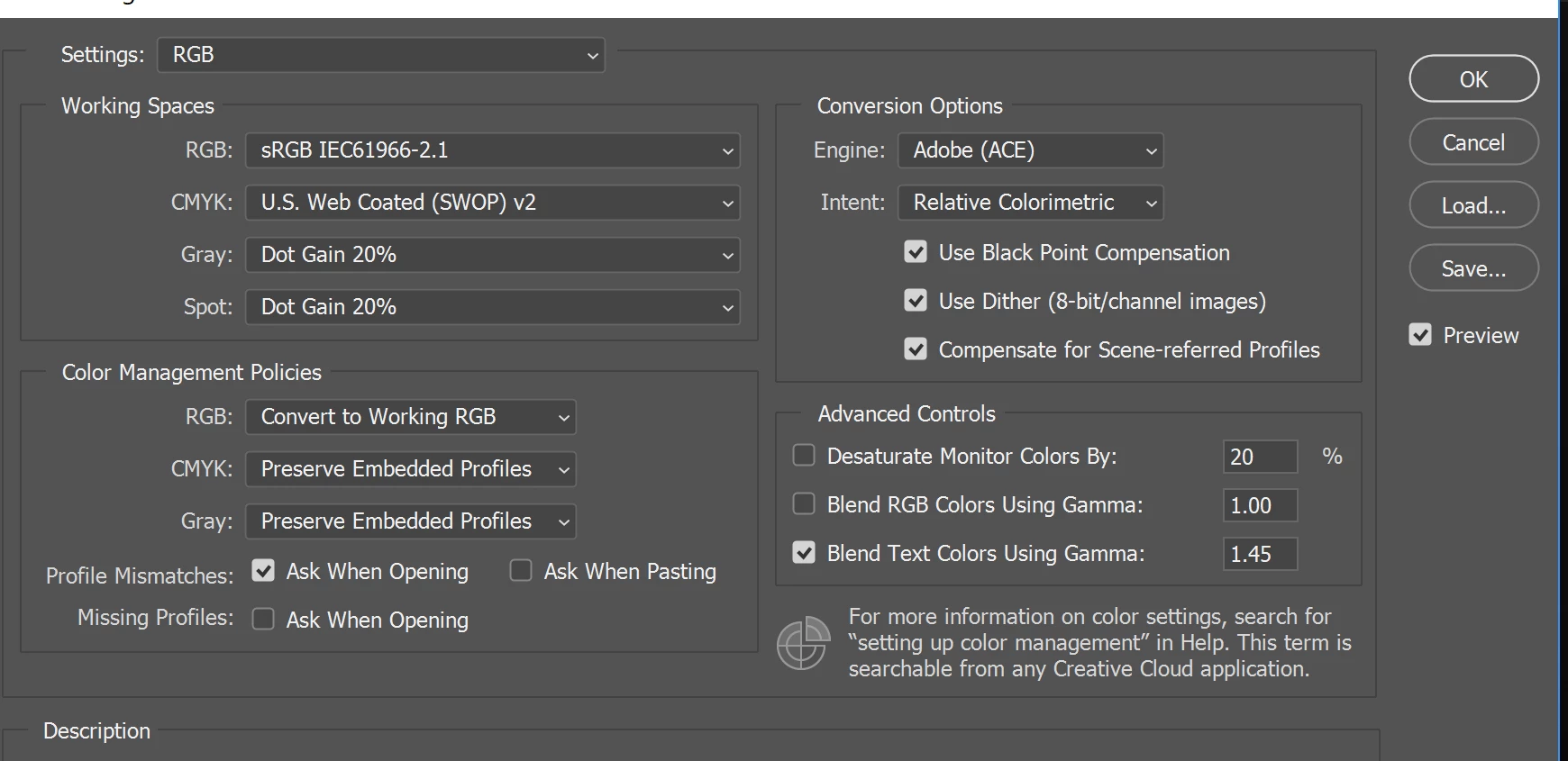 All color space settings are set to sRGB.