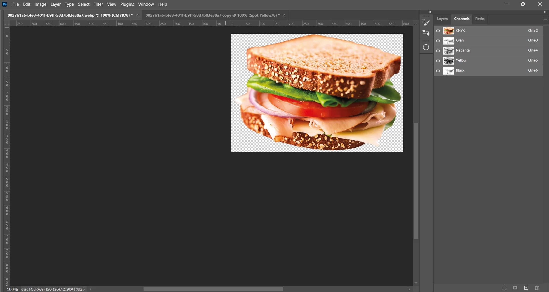 → My coworker suggested i leave the Yellow channel as visible, which for us is a common troubleshooting when the image doesn’t load/print correctly on Illustrator, but that doesn’t work either :(
