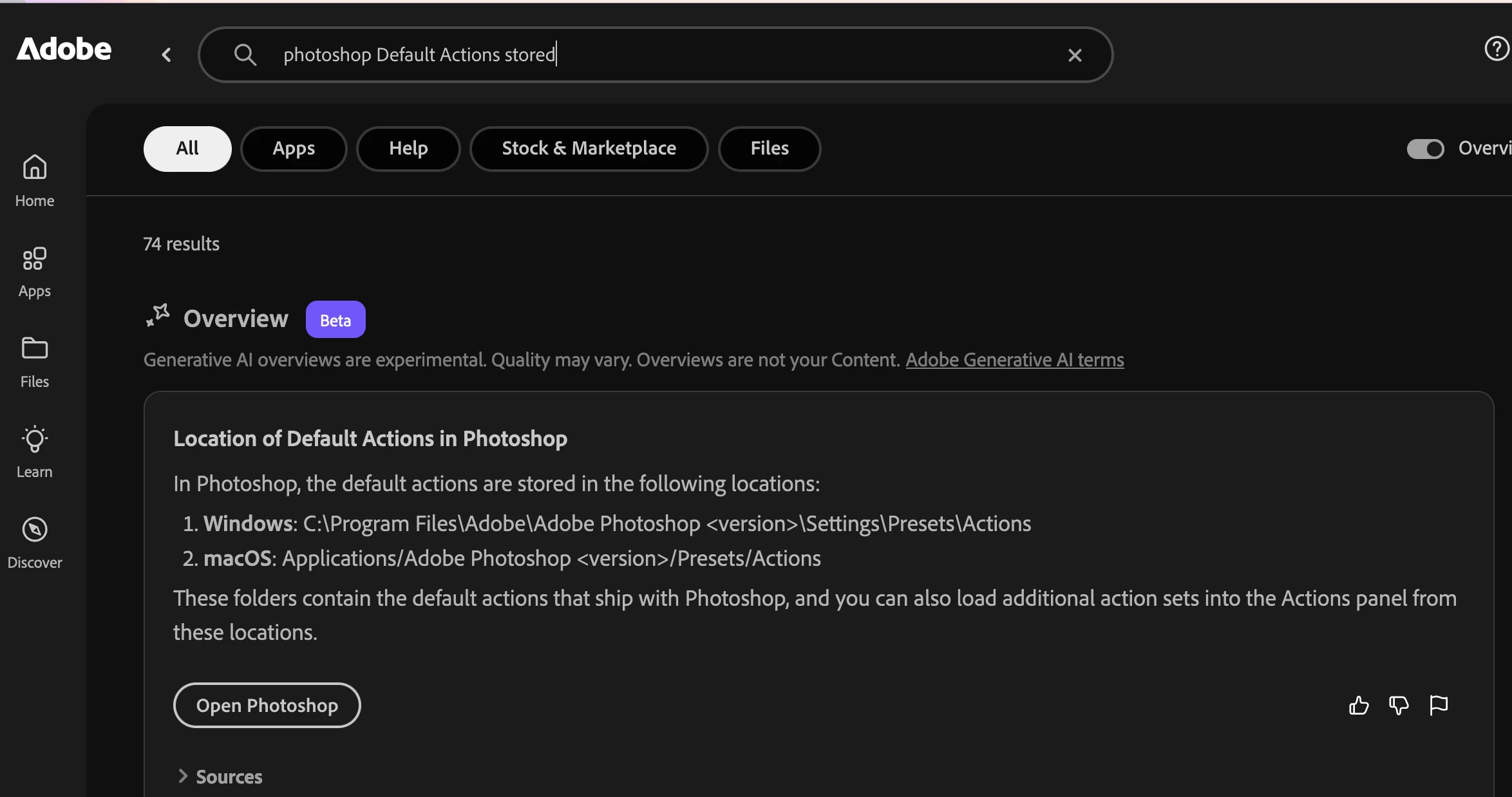 I am wanting to delete some very old versions of Bridge Batch Preferences. I'm running Bridge and PS 2025 under Mac OS Sequoia 15.2. So in Bridge when I go to Tools->Photoshop->Batch and I get the Batch dialog window on the upper left of that window is the heading Play and then the drop down menu 'Set'. Where are those Default Actions stored?
