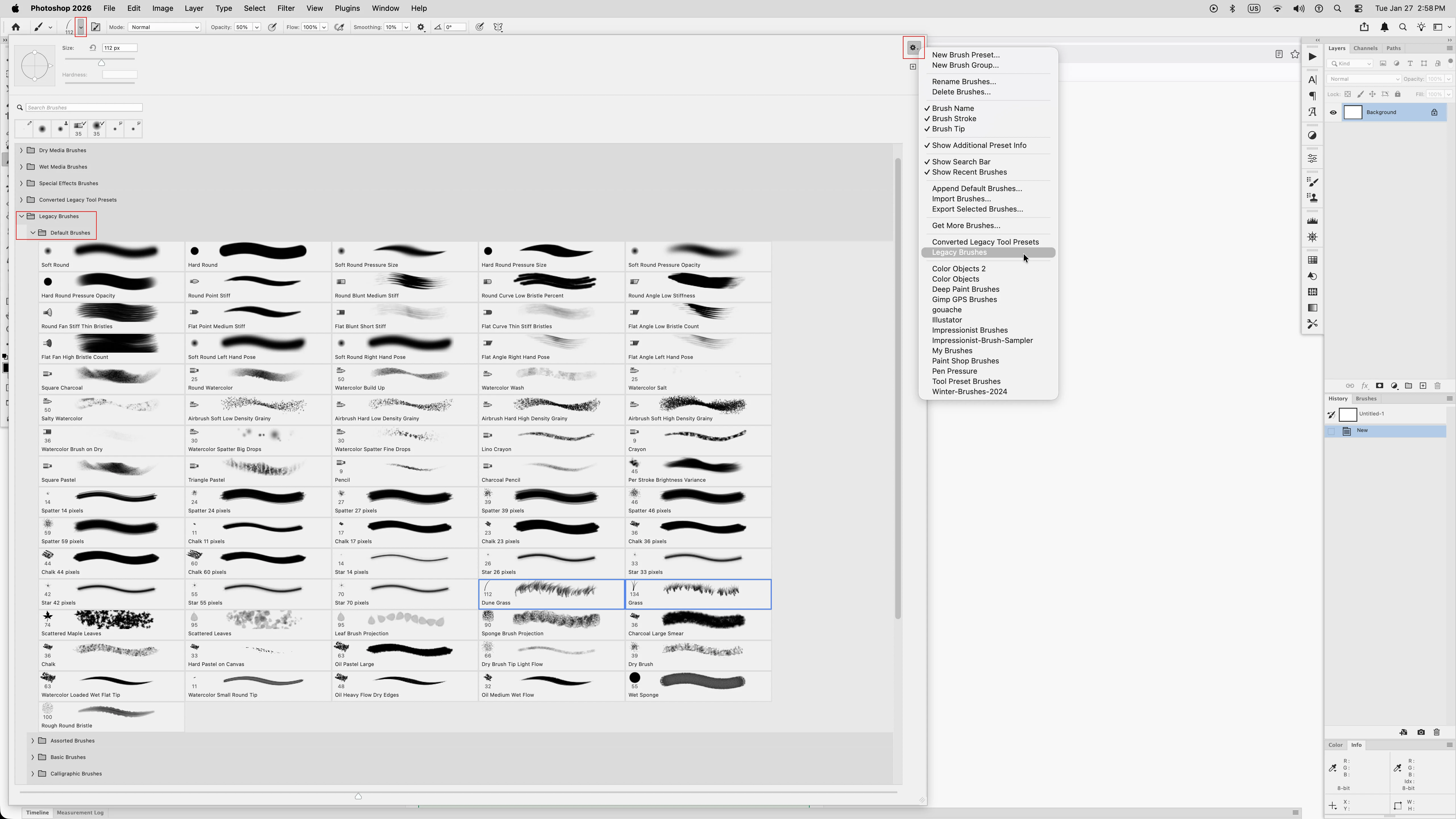 Click the three-dot menu in the Brushes panel