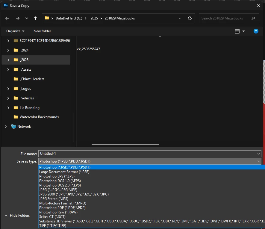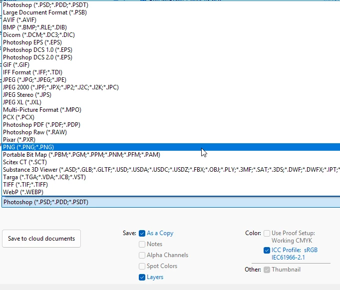 It's in the export panel, but not in my Save As Copy anymore, or in generic save dropdown. I looked in the settings but didn't find anything about which file types appears in drop down menus.