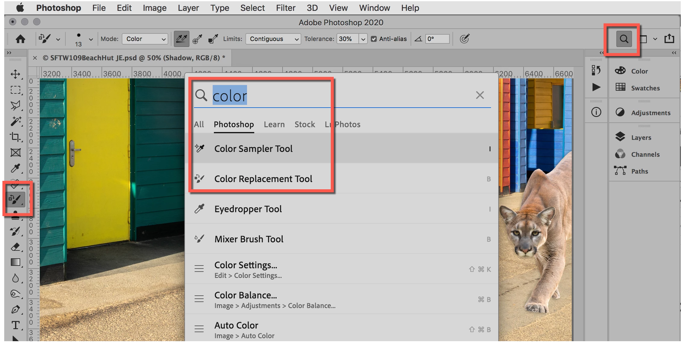 Where has the Colour Replacement tool gone in Photoshop 2020?