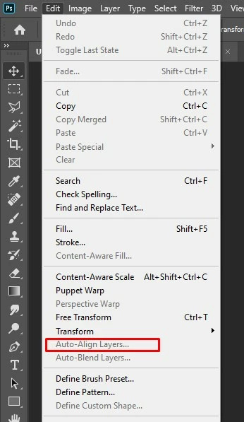 Where is Auto-align in Photoshop 21.0.2 on macOS?