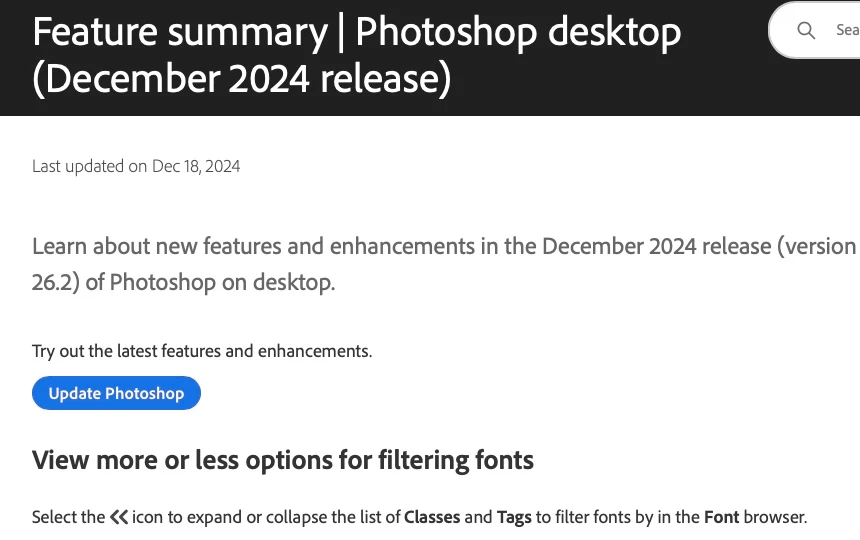I was directed to the New Features Summary page for PS 26.2.