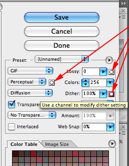 Where is "Use Channel to modify dither/lossy/color setting" in Save for Web GIF now?