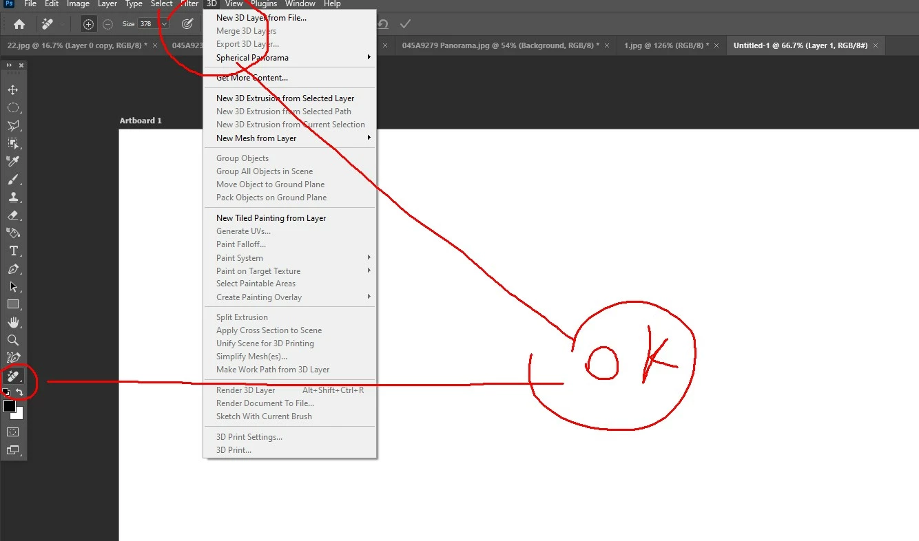 Which version of Photoshop 2 features at the same time 3dmenu and remove tool