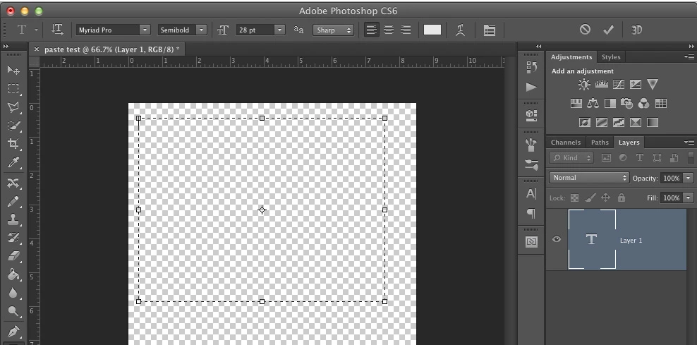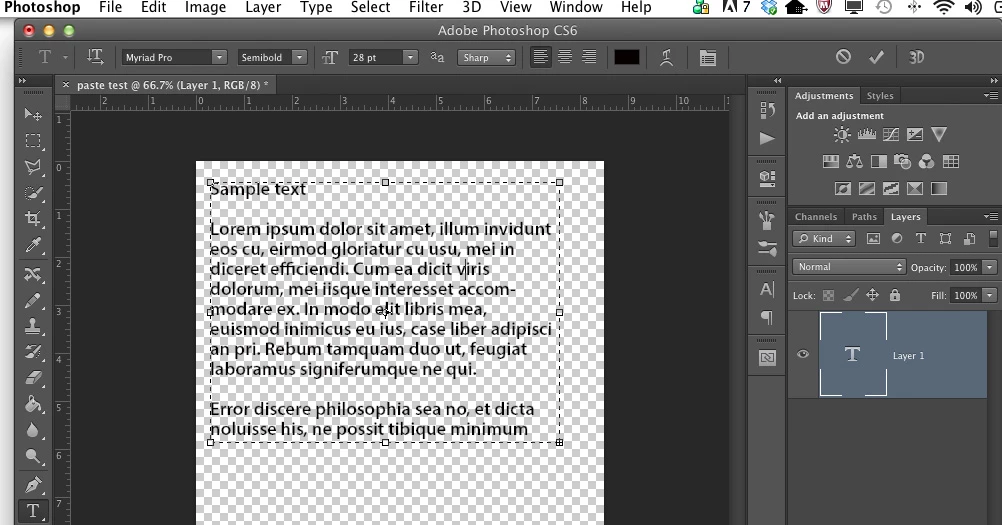 Why My Adobe Photoshop CS6 can't copy and paste text from another source like as note pad or Ms Word?