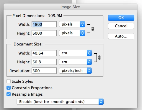 So ive created a 16x20inch  file at 300dpi so its 4800x6000px