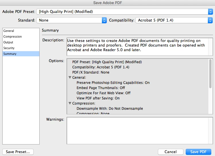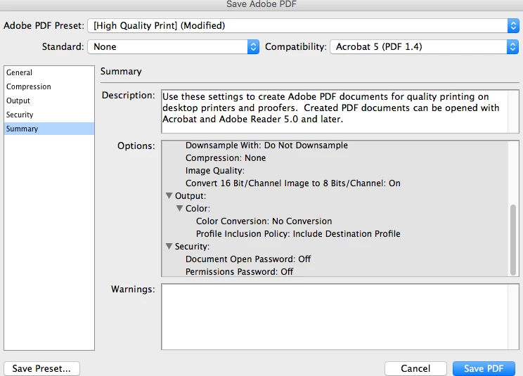 What were the complete and exact pdf save settings you used?