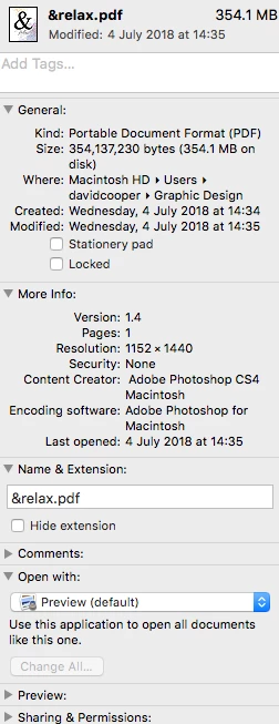 (according to the 'get info' option on a mac) says its now only a resolution of 1152x1440