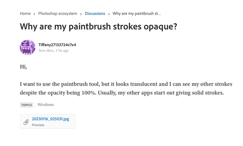 An aside: The thread’s title seems to contain a typo, you probably meant »Why aren’t my paintbrush strokes opaque?«