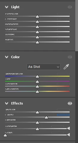 why camera raw filter options half visible