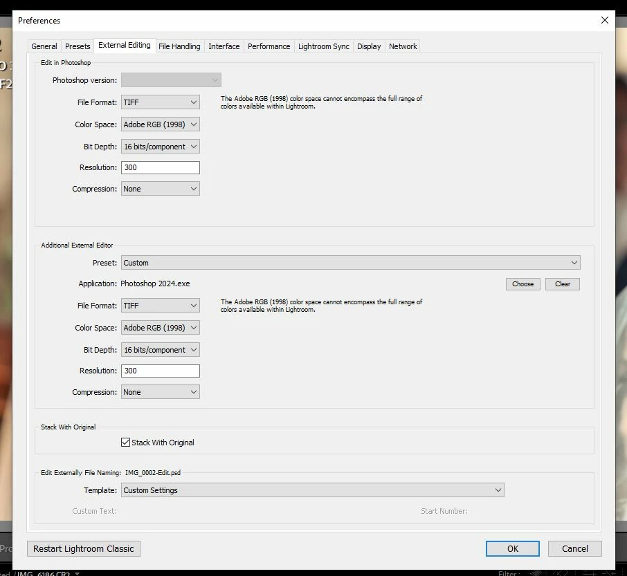 Looking at your Preferences screenshot, there's no Photoshop version active for "Edit in". Apparently the link between Lr and PS is broken. Can you do a normal Edit In? Do you have any other problems with file associations in Photoshop? Have you had, or do you have, the beta installed?
