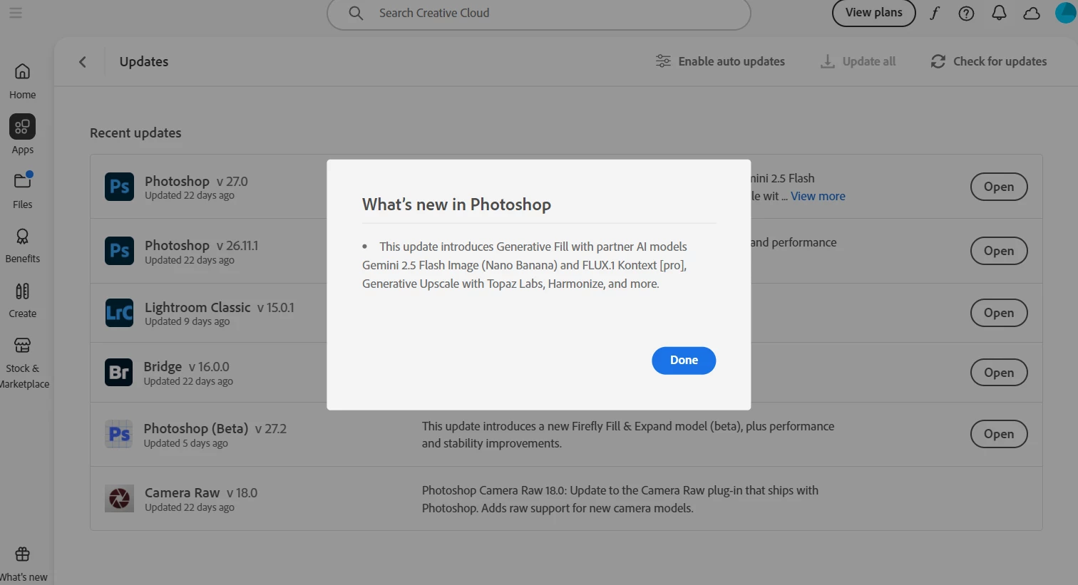 I have the latest update to Photoshop, version 27.0.0 and I still do not have the Harmonize button on the contextual task bar. It's not in any menu. Where the heck did they HIDE it? When I open the CC Desktop App and view Updates, then click on "View More" beside Photoshop, it shows it to be in the update. Yet it IS NOT THERE...