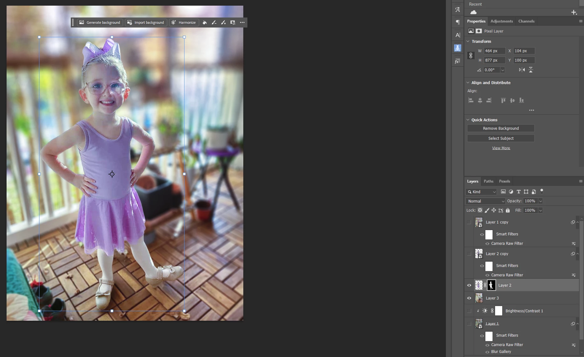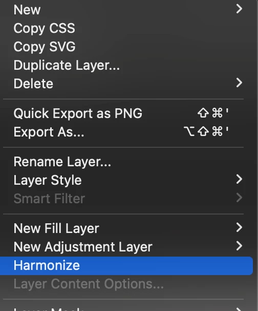 Why do I not have the Harmonize button on the contextual task bar in version 27.0.0 of Photoshop?