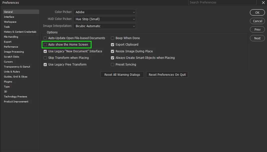You can disable the home screen in preferences