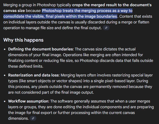 Why does merging a folder in Photoshop also crops it to canvas size?