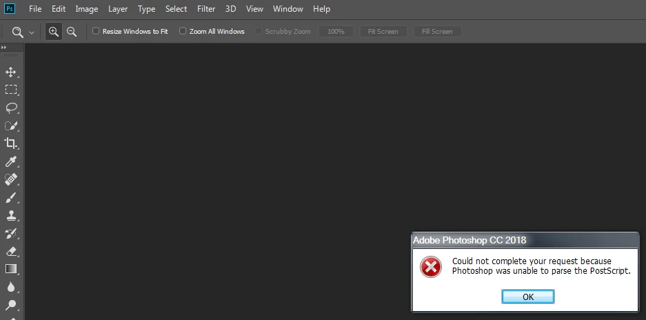 This is the error message shown; when I open same file in Illustrator, it opens without a problem.