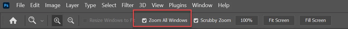 Why does Photoshop resize the view on all open images when magnifying just in one.
