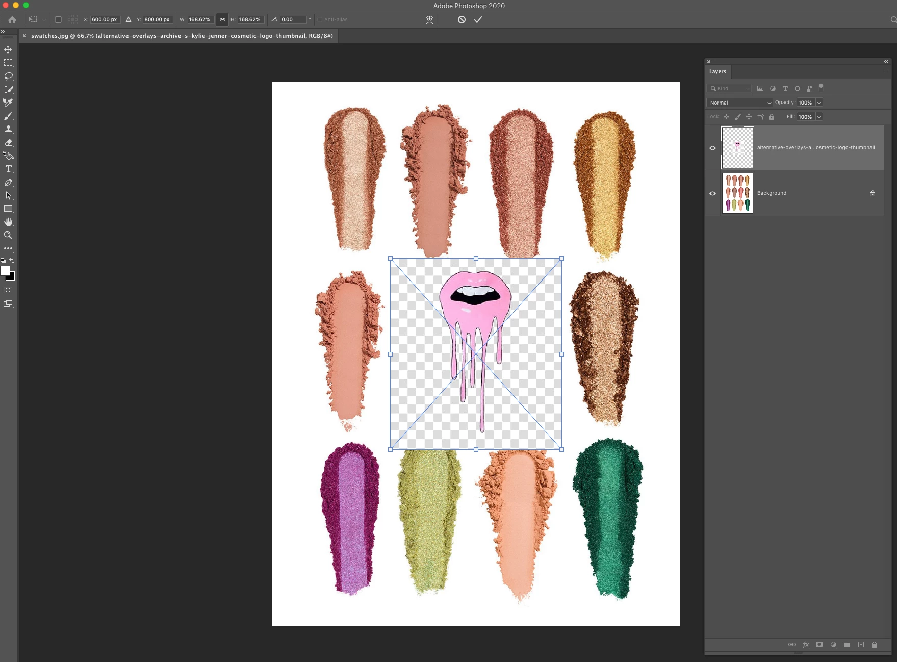 When I move a png file on top of a jpg file it still seems to display its checkerboard background. I have double-checked that it is a proper png file by re-exporting with transparency checked. But still no dice. Not sure what I’m doing wrong. Example below. Thanks.