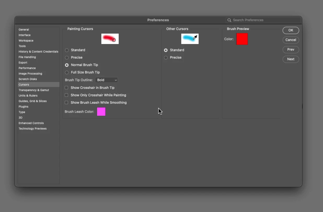I have a new install of Adobe Creative Cloud and Adobe Photoshop. Before I did anything, I tried using the brush tool to paint a line. I discovered that at 100% hardness, the brush tool does not fill the circle that represents the brush all the way to the edge. See attached photos. (1) The first photo shows the brush filling black paint on a gray background. You can see that the paint does not fill in to the edge of the circle. The brush is set to 100% hardness, 100% Opacity, 100% Flow, 10% Smoothing. Default setup from Adobe install. (2) The second photo shows the Settings for the Cursor in Preferences. Again, all default from Adobe. Why is this not filling the circle 100% and how can I change this? Thank you!
