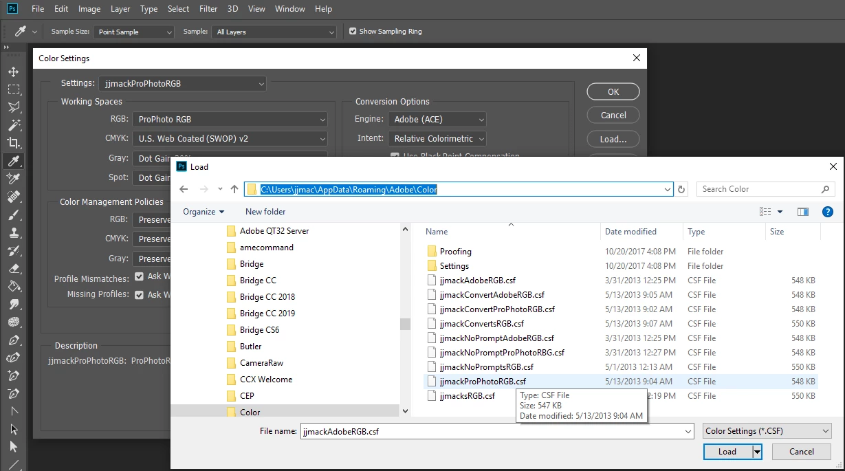 This has been a long time gripe of mine, but for the love of God, Adobe, stop switching my default profile to sRGB with every single update. I can't believe that such a professional program changes my default working profile with every update.