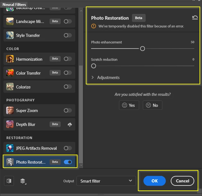 Why has Photo Restoration neural filter has been disabled for many months now?