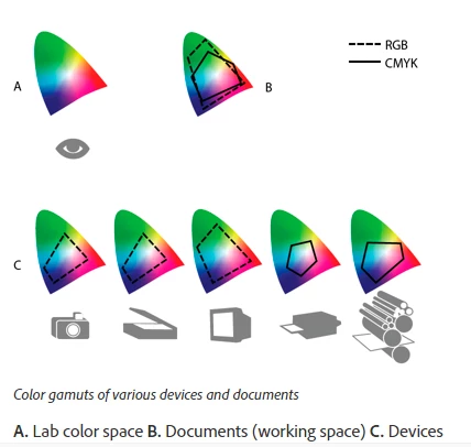 That illustration doesn't make any sense, except to show that color spaces of various devices are indeed different.