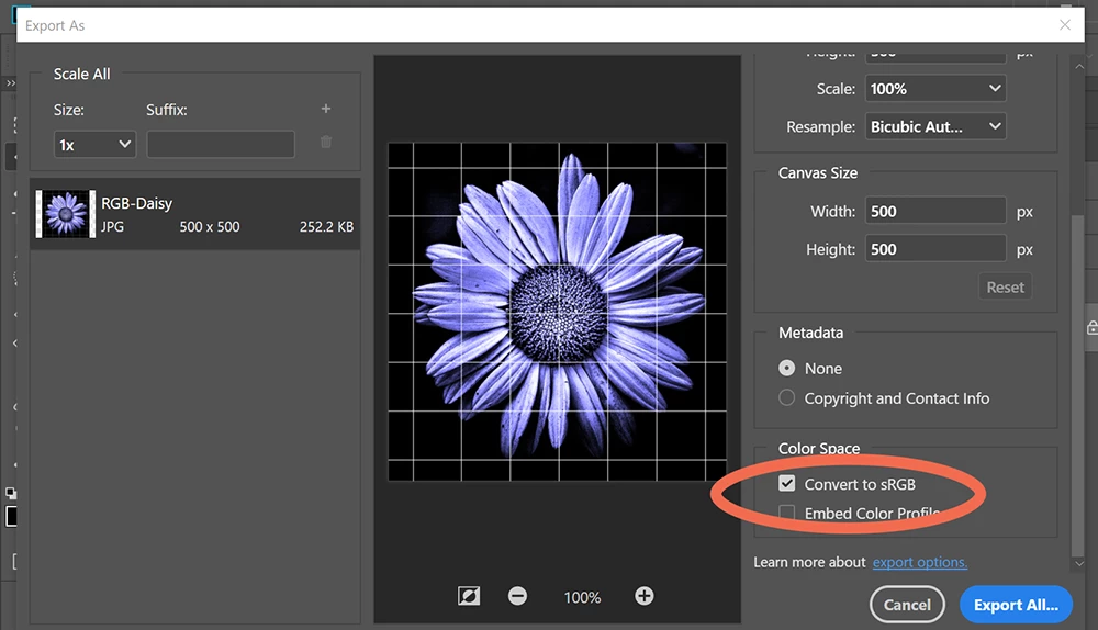 Add the sRGB profile and set it as default.