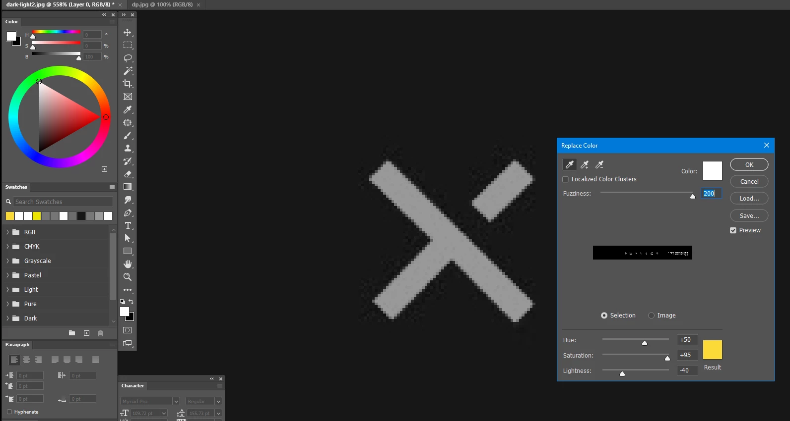 Why Replace color doesn't work for B/W and greyscale images?